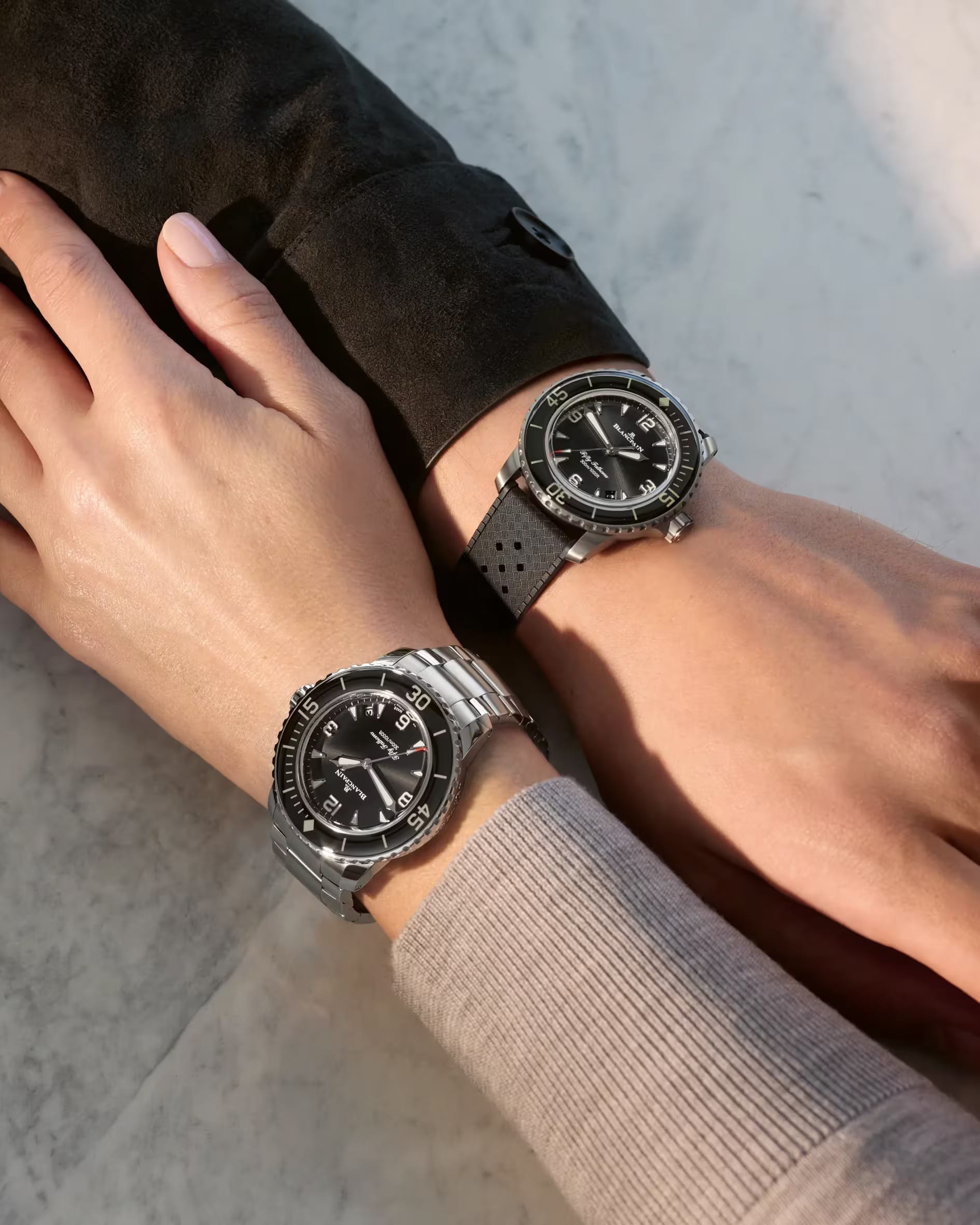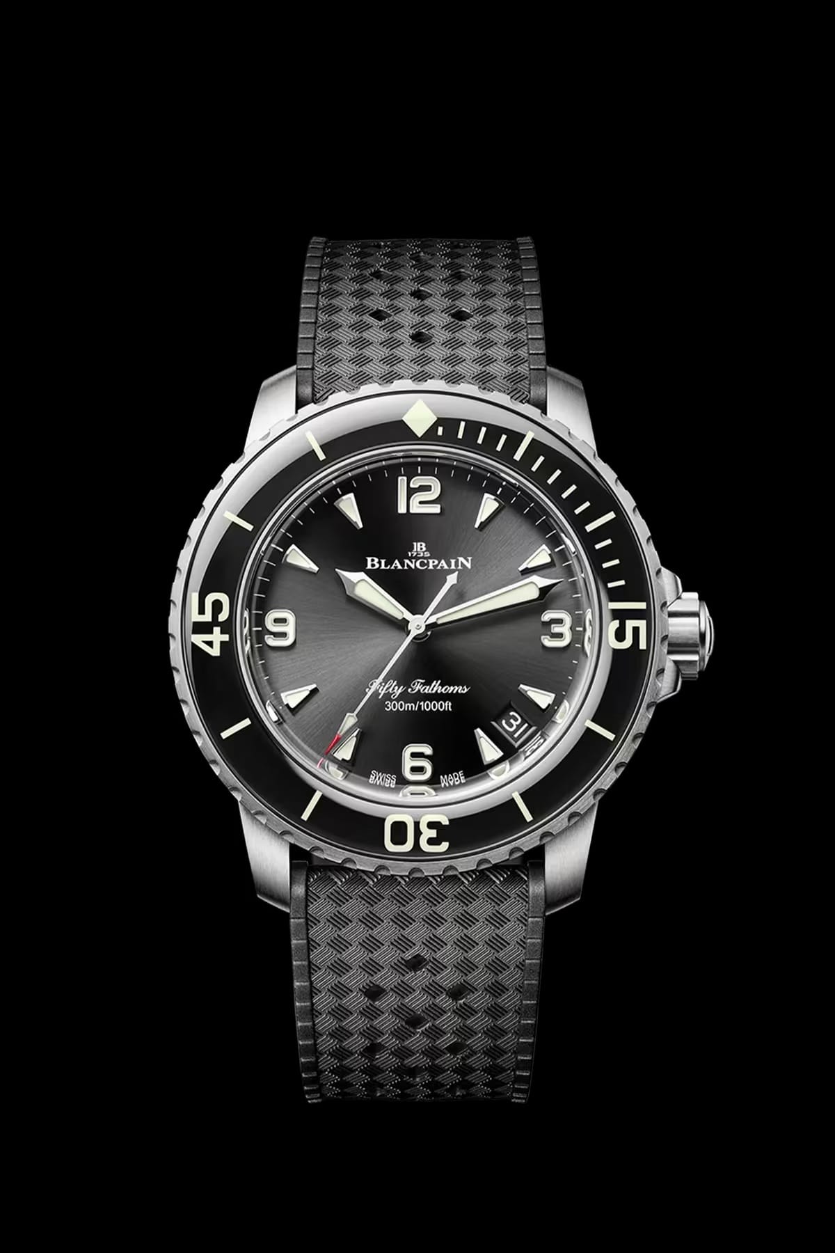 Conçue par Jean-Jacques Fiechter, ancien directeur de Blancpain également amateur de plongée, la Fifty Fathoms (nom inspiré de La Tempête de Shakespeare mais aussi de la profondeur maximale atteinte par les plongeurs à l’époque) a été rendue célèbre par son adoption par les fondateurs des nageurs de combat français : le capitaine Robert Maloubier et le lieutenant Claude Riffaud. Celle-ci répondait parfaitement aux critères qu’ils avaient définis pour les missions sous-marines grâce, entre autres, à son système breveté de couronne à double joint et sa lunette tournante pour mesurer le temps de plongée dotée d’un mécanisme de blocage. Elle sera plus tard portée par l’équipe qui filmait les séquences subaquatiques du long métrage oscarisé de Jacques-Yves Cousteau, Le monde du silence.