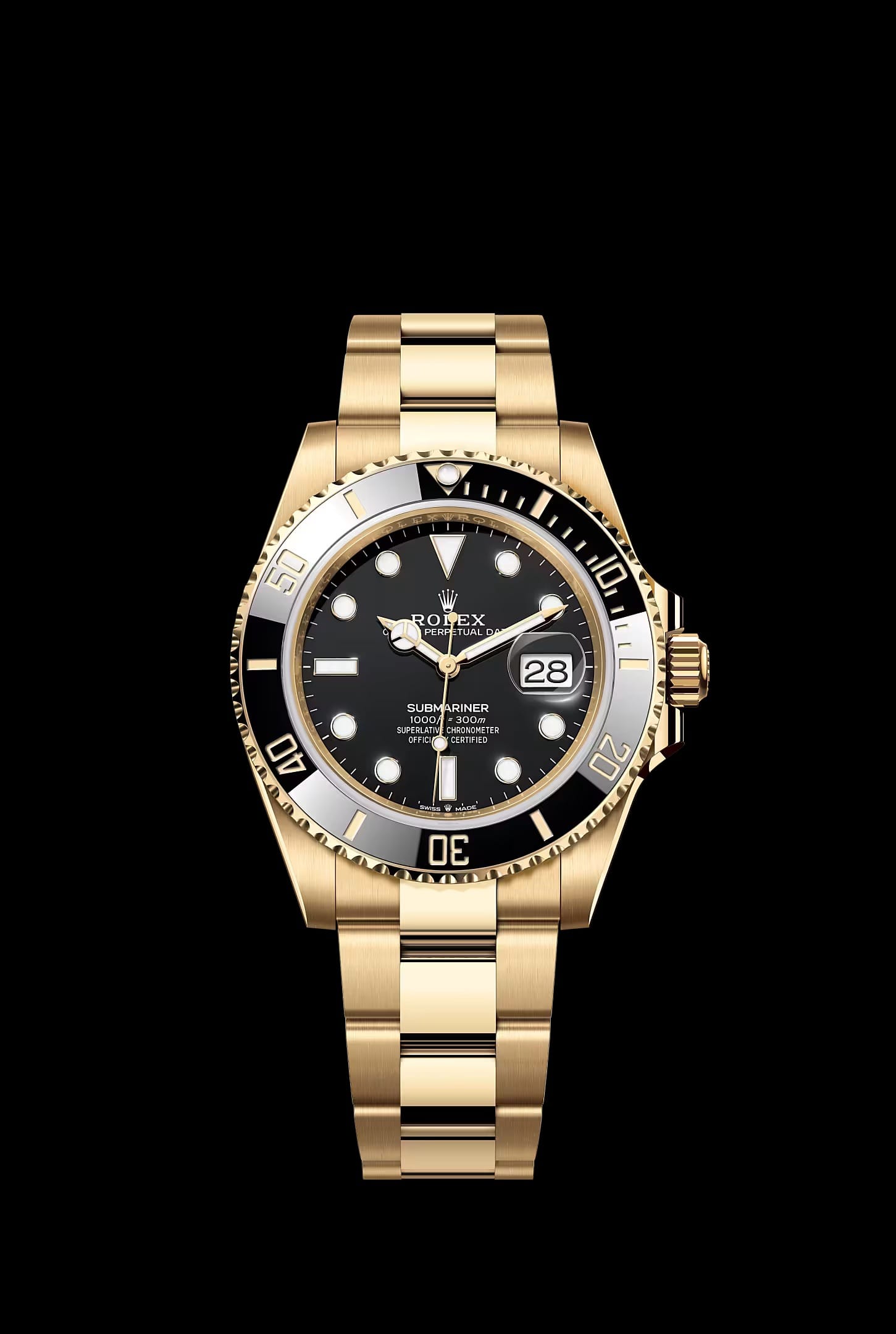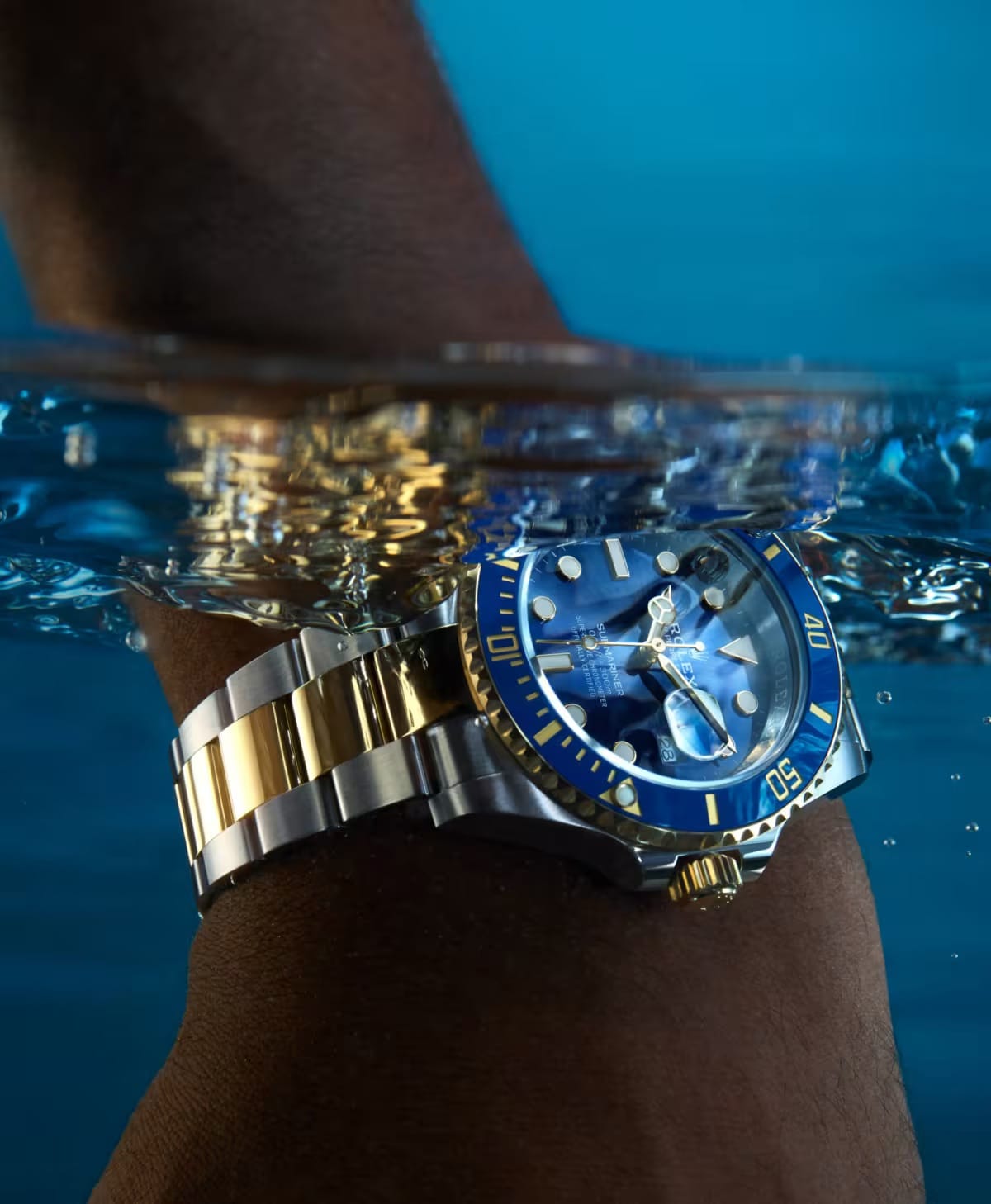 La Rolex Submariner est peut-être l’archétype-même de la montre de plongée avec son design immédiatement reconnaissable, maintes fois copié. Réponse à l’engouement récent pour la plongée lors de sa sortie en 1953, elle était alors la première montre-bracelet étanche à 100 mètres (200 m dès l’année suivante puis 300 en 1979), poursuivant ainsi la quête d’étanchéité initiée par Rolex avec le boîtier Oyster dans les années 20. Son succès fera des émules dans le catalogue de Rolex dès 1967 avec la Sea-Dweller puis la Deepsea et Deepsea Challenge en 2008 et 2022.