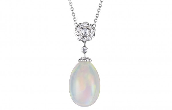 Pour accompagner l’adaptation cinématographique du roman, la maison Fabergé a rendu hommage à son héroïne. Résultat : un collier en or blanc, centré sur une opale blanche en forme de poire. Une curation de pierres peu anodines, puisque l’opale est connue pour ses reflets changeants et instables. Une gemme sauvage, qui incarne à elle seule l’exaltation émotionnelle d’Anna, déchirée entre passion et morale.