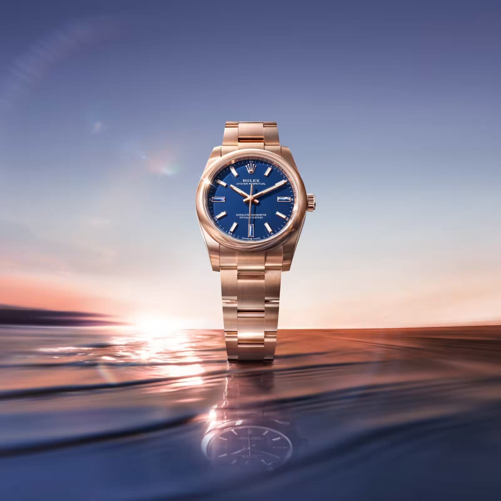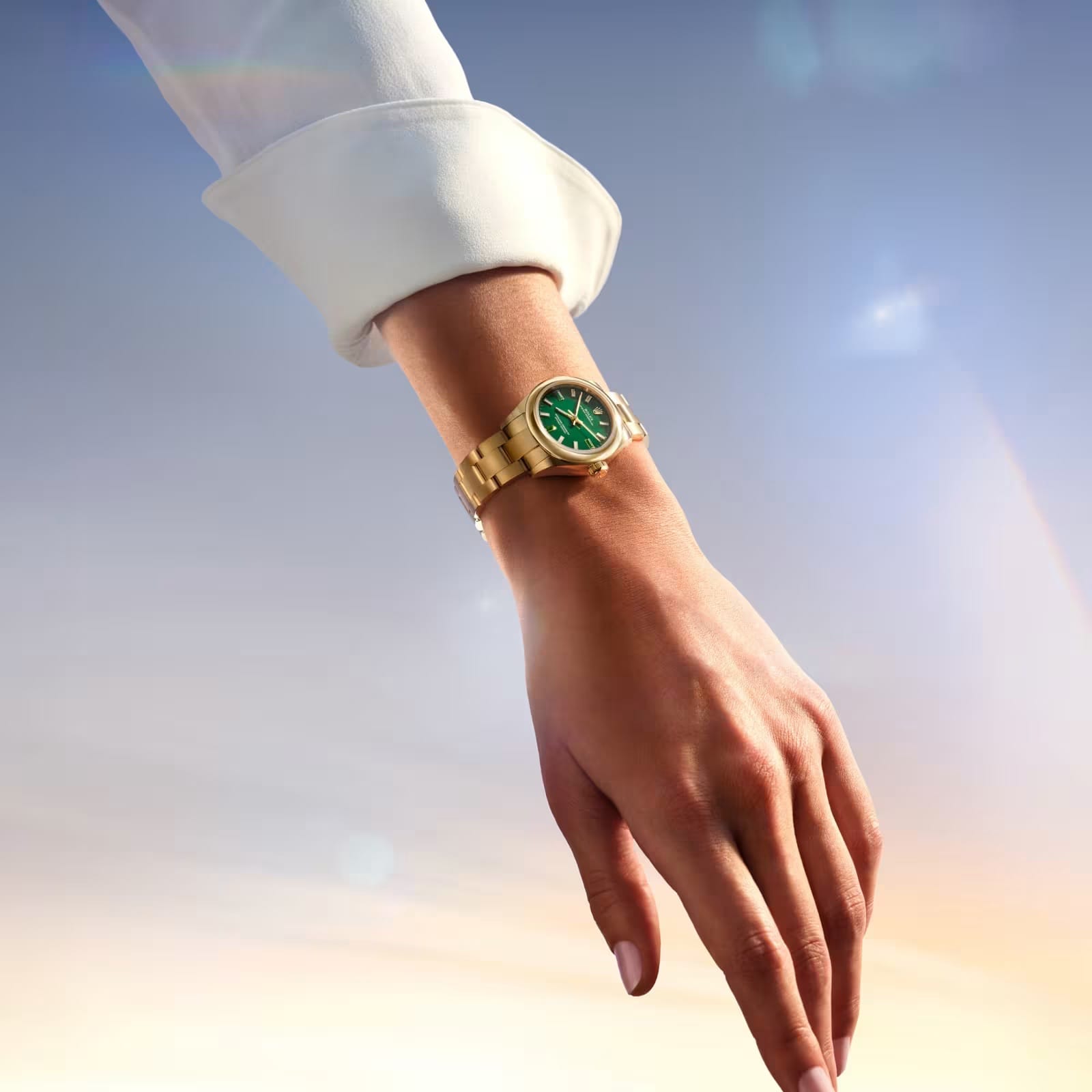 Décrite par Rolex comme inaugurant une “nouvelle approche de ce métal précieux, tout en délicatesse et en sobriété”, la nouvelle version or 18 carats de l’Oyster Perpetual se dote également d’un cadran laqué “green stone” pour le modèle Oyster Perpetual 28 en or jaune et d’un cadran laqué “blue stone” pour le modèle Oyster Perpetual 34 en or Everose. Autre nouveauté, les index à 3, 6 et 9 h sont en pierre naturelle.