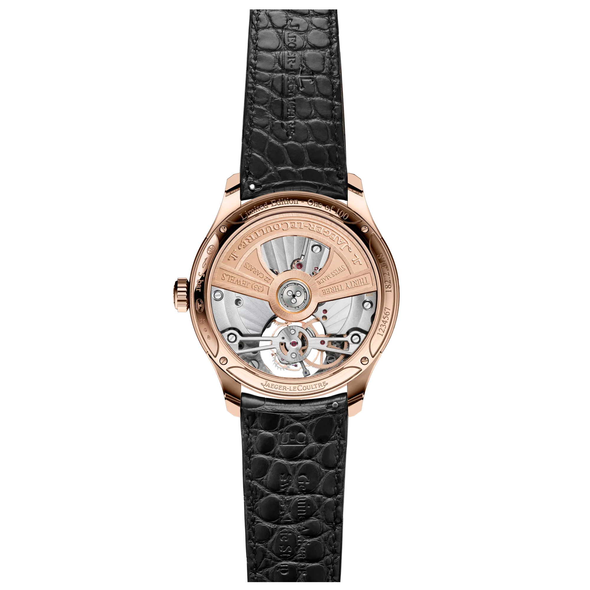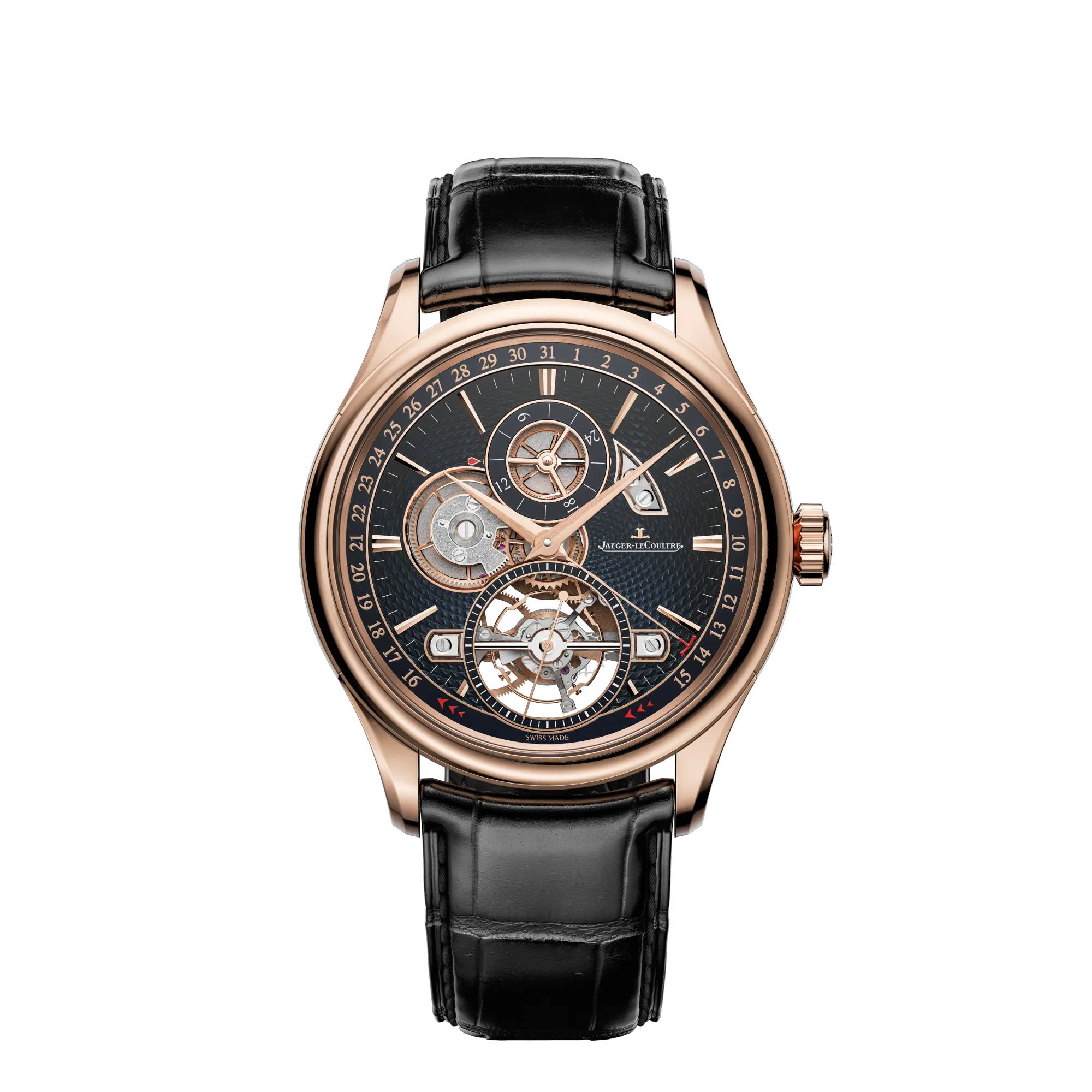 Limitée à 100 pièces, la Master Grande Tradition Tourbillon avec date sautante est alimentée par le Calibre 978 avec mécanisme de date sautante (le 15 de chaque mois à minuit, l’aiguille de date saute directement au 16 pour permettre la visibilité permanente du tourbillon), disque 24 heures (indique le jour et la nuit ou un second fuseau horaire en fonction des réglages) et un tourbillon qui effectue une révolution complète en 60 secondes. Impressionnant.
